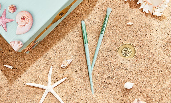This beautiful seagreen set includes an angled brush and blending brush. The angled brush can be used for brow liner and eyehsadow, while the blending brush is ideal for creating soft color diffusion or defined blending